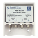 Filtro 5G-TWIN da esterno/interno che permette di attenuare notevolmente i disturbi provenienti da ripetitori che trasmettono tramite la nuova tecnologia… Mostra di più (+) Filtro 5G-TWIN da esterno/interno che permette di attenuare notevolmente i disturbi provenienti da ripetitori che trasmettono tramite la nuova tecnologia 5G, in particolar modosulle frequenze 695÷790 MHz.Caratterizzato dal doppio ingresso e doppia uscita che permette di filtrare i segnali provenienti da due antenne diverse. Mostra di meno (-) |