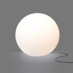 Baloo è una lampada ornamentale per esterni con diffusore di forma sferica in polietilene bianco e resistenti ai raggi UV. |
