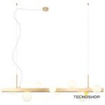 Sospensione per interni equipaggiata con LED SMD, struttura in metallo e alluminio spazzolato verniciato oro opaco, diffusori in silicone bianco. |