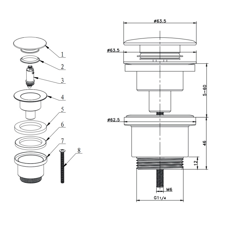 Design elegante con corpo e tappo tondo bianco opaco, semplice da installare e adatto a ogni tipo di lavabo.
