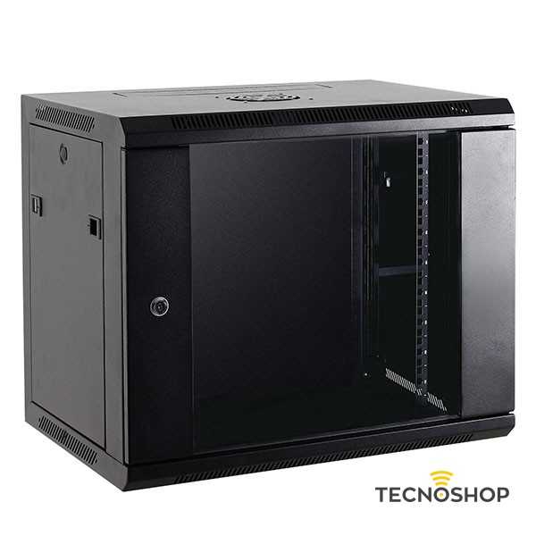 La struttura a doppia sezione altamente resistente, realizzato in acciaio laminato a freddo da SPCC 2,0 mm di spessore nei profili e e con profili da 1,0 mm per gli altri elementi. Scanalato frontale e laterale per ottimizzare la ventilazione. Entrate pretagliate per il passaggio dei cavi. I pannelli laterali sono estraibili per un facile accesso ai dispositivi e un foro per installare una serratura a cilindro (non inclusa). Porta frontale con ampio display in vetro temperato, con apertura di 180º e serratura a cilindro con 2 chiavi (inclusa). Esso comprende gli accessori necessari per l’installazione dei dispositivi nel rack. Per interni, grado di protezione IP20.