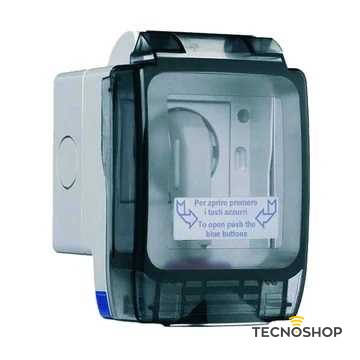 Contenitore AVE SEAL IP56 installazione da parete o abbraccio palo con BG101AP (non incluso), stagno con sportello apribile a cerniera grado di protezione garantito IP56 anche con spina inserita – 2 moduli.