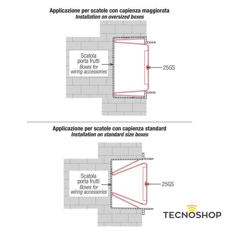 Il gancio metallico AVE 25GS agevola e velocizza il ripristino della scatola qualora l’asola metallica dedicata all’aggancio del supporto si rompa. In un semplice passaggio l’installatore è in grado di applicare il gancio metallico 25GS in sostituzione dell’asola rotta, ripristinando a pieno la funzionalità della scatola. Una soluzione professionale che permette all’installatore di risparmiare tempo in uno degli inconvenienti di cantiere più frequenti, evitandogli di effettuare complicate operazioni di ripristino o di dover ricorrere alla sostituzione della scatola.