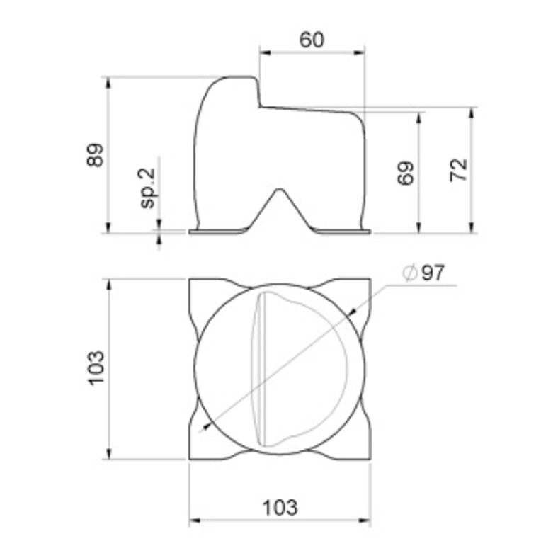 Battente di arresto zincato a murare per cancelli 103×103 mm.