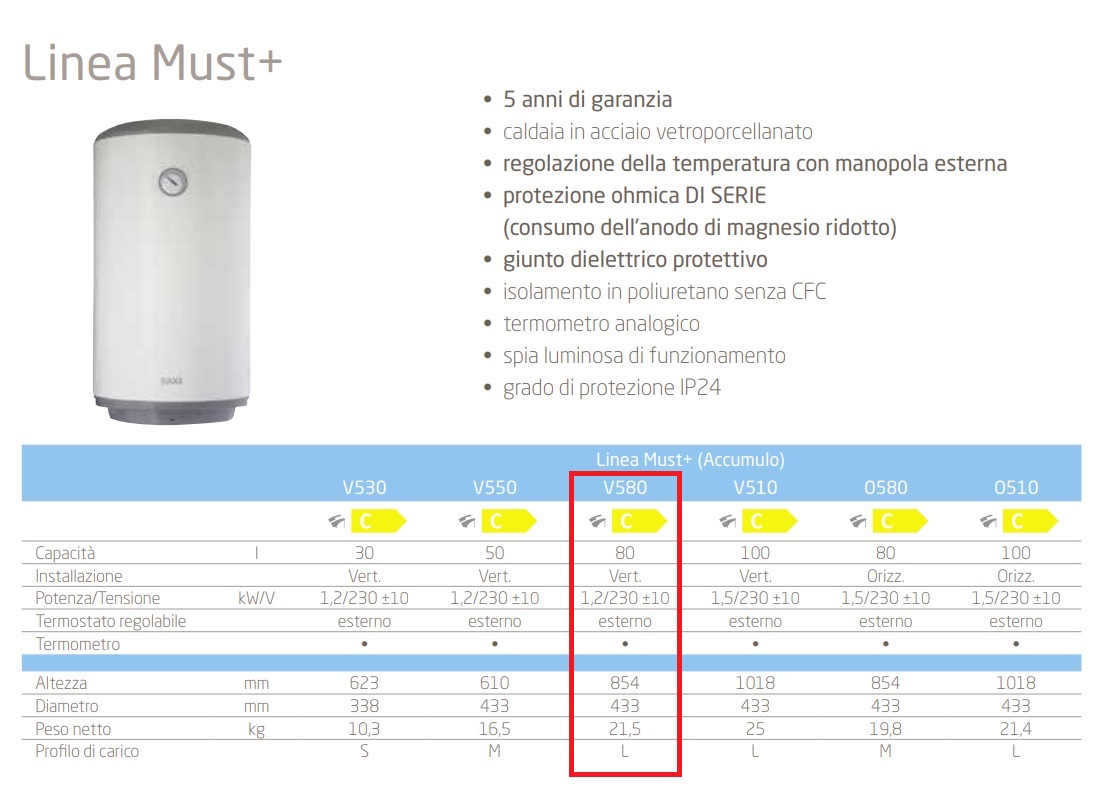 BAXI SCALDABAGNO ELETTRICO VERTICALE MUST+ V580 80LT CON 5 ANNI DI GARANZIA