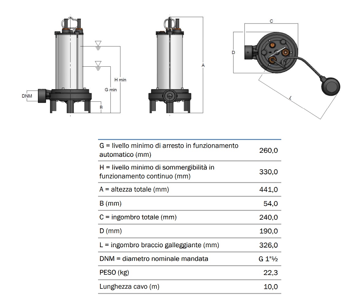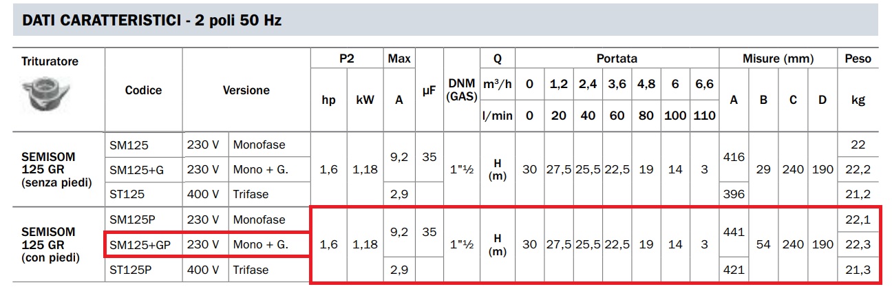 | Densità liquido pompato (kg/dm³) | < 1,1 |