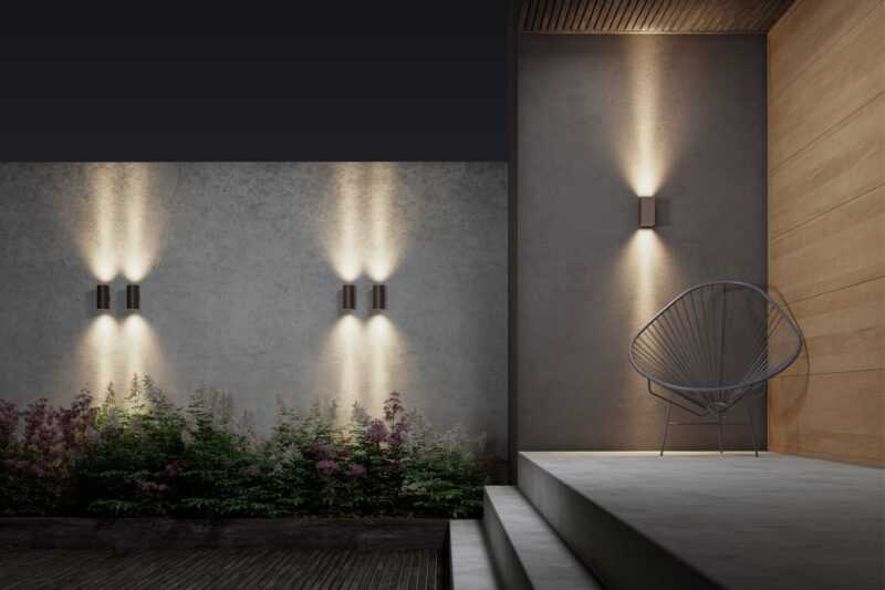 Questo applique decorativo incorpora la tecnologia Switch che consente di selezionare la temperatura di colore tra 2.700K, 3.200K e 4.000K. Grazie alla sua elevata protezione da acqua e polvere (IP65), è perfetta per illuminare qualsiasi area esterna in modo morbido ed elegante.