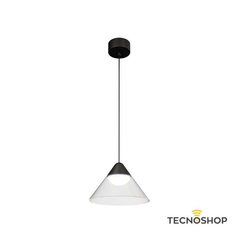 Ark รจ una lampada a sospensione per interni con potenza di 6W e temperatura di colore di 3.000K. Fatto in alluminio con finiture nero e acrilico trasparente, ha un fascio luminoso a 90ยบ, un UGR 90.