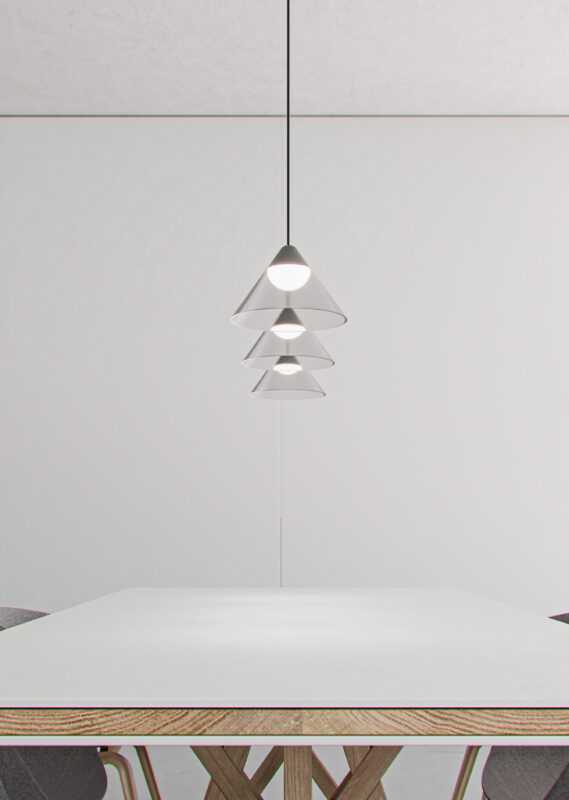 Ark è una lampada a sospensione per interni con potenza di 6W e temperatura di colore di 3.000K. Fatto in alluminio con finiture nero e acrilico trasparente, ha un fascio luminoso a 90º, un UGR 90.