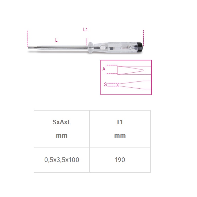 Giravite cercafase 150/250V. Dimensioni (SxAxL): 0,5×3,5×100 mm.
