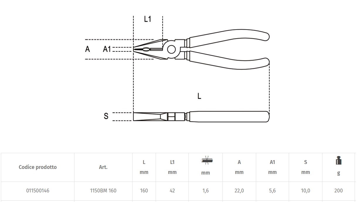 BETA PINZA UNIVERSALE 1150BM 160mm