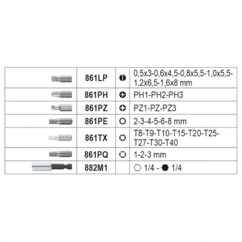 – 1x Beta 860EA/31 Assortimento di 30 inserti 1/4″ con portainserti magnetico in pratico astuccio (dettagli dotazione nell’immagine).