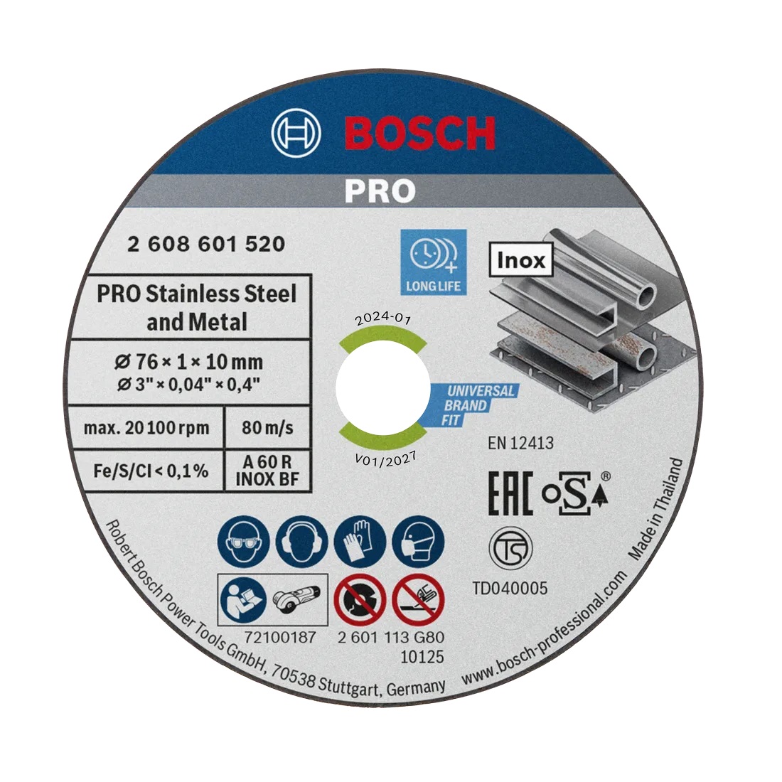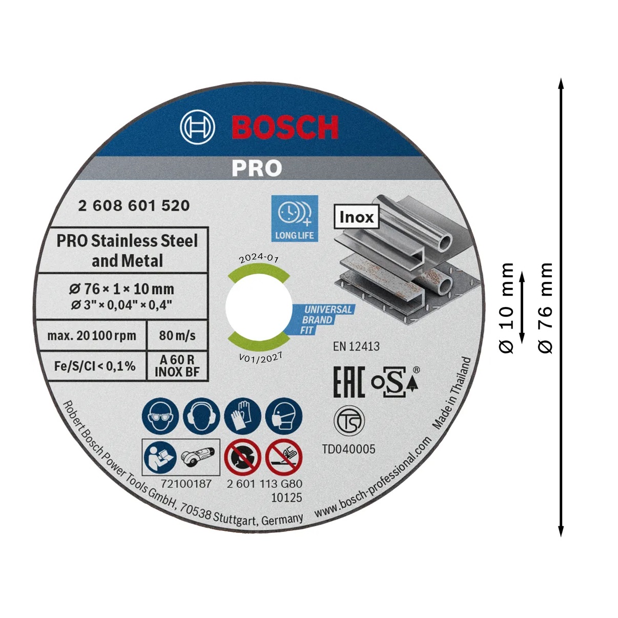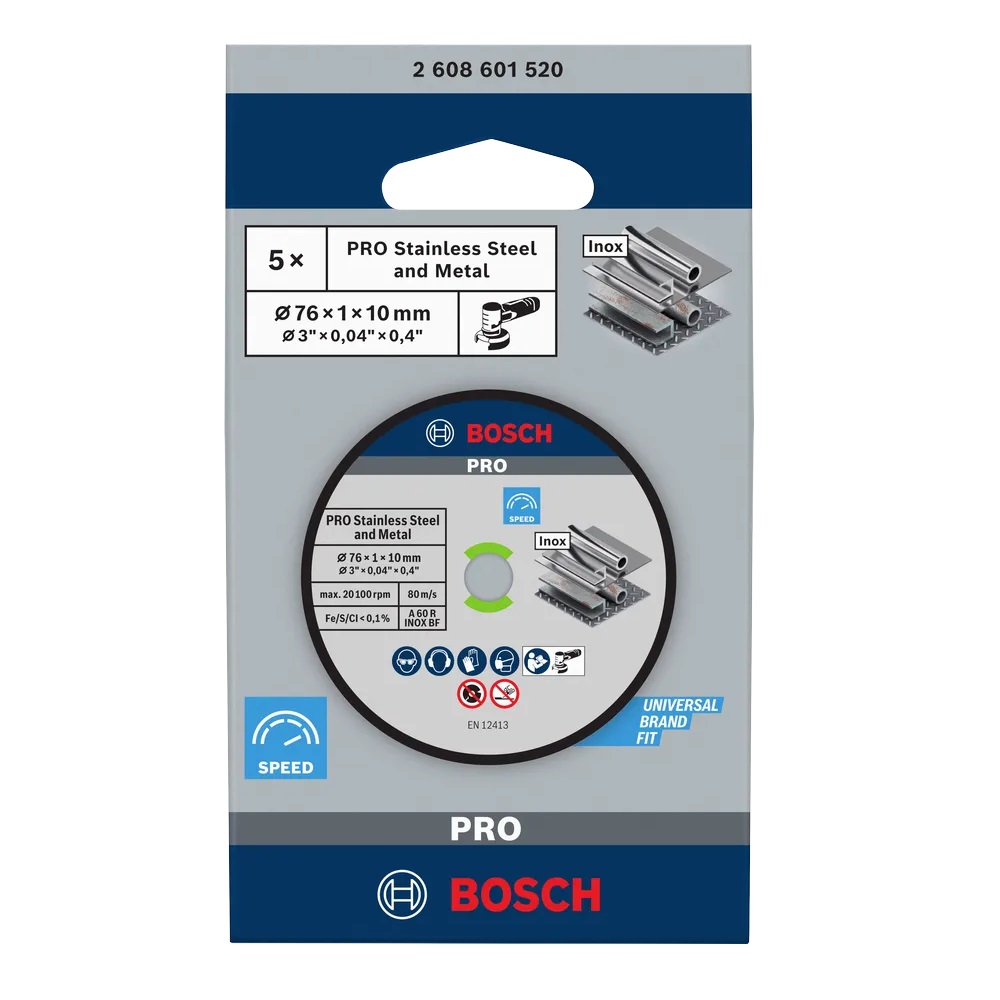 Mola da taglio PRO Stainless Steel and Metal per smerigliatrici angolari mini, dimensioni disco 76x1x10 mm.