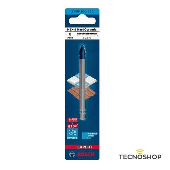 La punta Bosch EXPERT HEX-9 HardCeramic è progettata per la foratura della ceramica e può praticare fori in piastrelle dure senza lubrificante o raffreddamento.