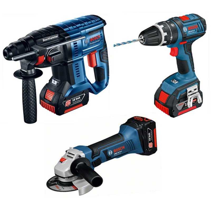 Il set di elettrountesili Bosch 0615990M0U 18V 4AH è una praticissima soluzione che include tre elettroutensili alimentati con le medesime batterie al litio da 18v.