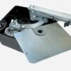 Cassa di fondazione in acciaio con trattamento in cataforesi (FROG-CF) o in acciao AISI 304 (FROG-CFI), completa di leva di aggancio sblocco, staffa di fissaggio al cancello e vite per la regolazione del punto di finecorsa in apertura. Descrizioni delle parti: