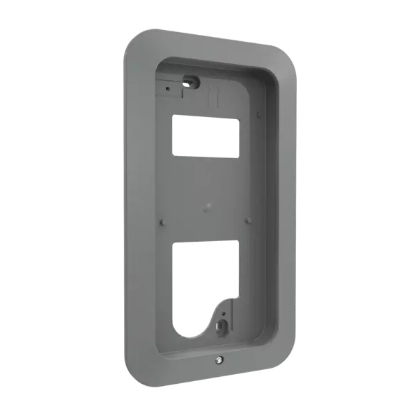 Cornice in zama grigia. Grado di protezione antiurto IK09. Da utilizzare con la scatola da incasso LSI per posti esterni citofonici e videocitofonici della serie LHS.