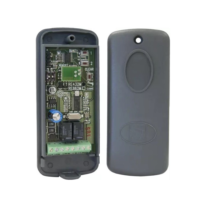 Ricevente bicanale Came 001RE432M a 433,92 MHz da esterno IP54 12 – 24 V AC – DC per memorizzare fino a 50 utenti diversi (codici), con codifica TOP, TAM, ATOMO D, TWIN e TTS.