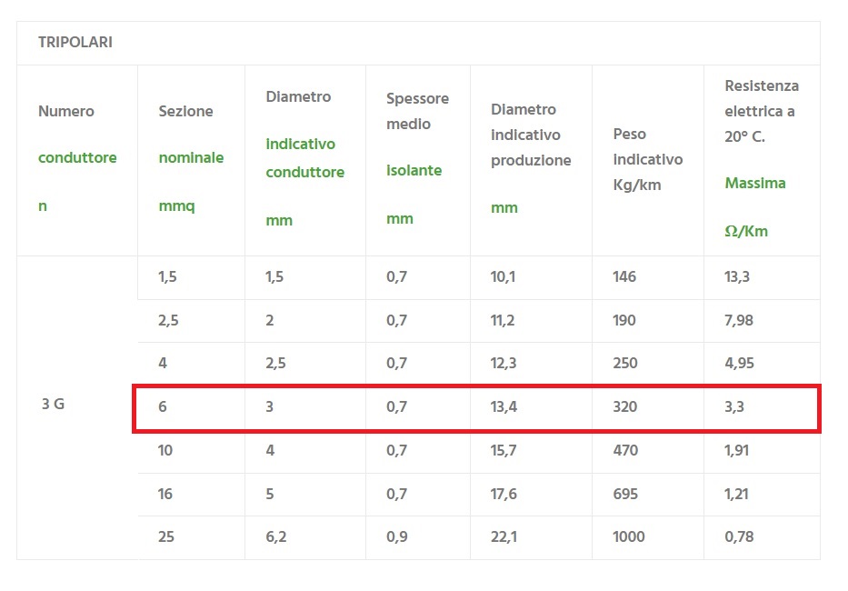 CAVO BUTILICO FG16OR16 3×6 mm² AL METRO