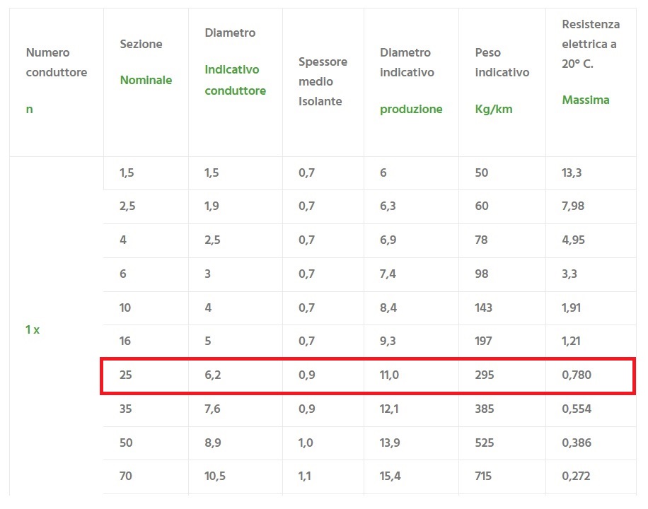 - Tensione nominale: Uo/U: 0.6/1 kV c.a. – 1.500 V c.c.