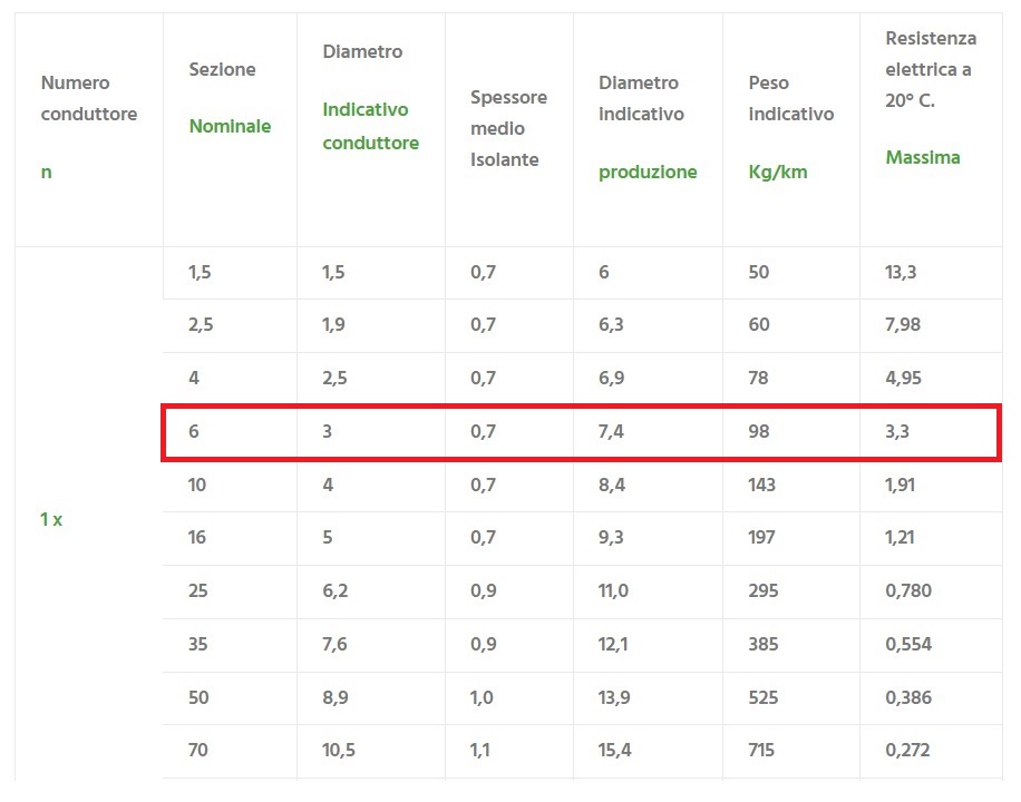 • Tensione nominale: Uo/U: 0.6/1 kV c.a. – 1.500 V c.c.