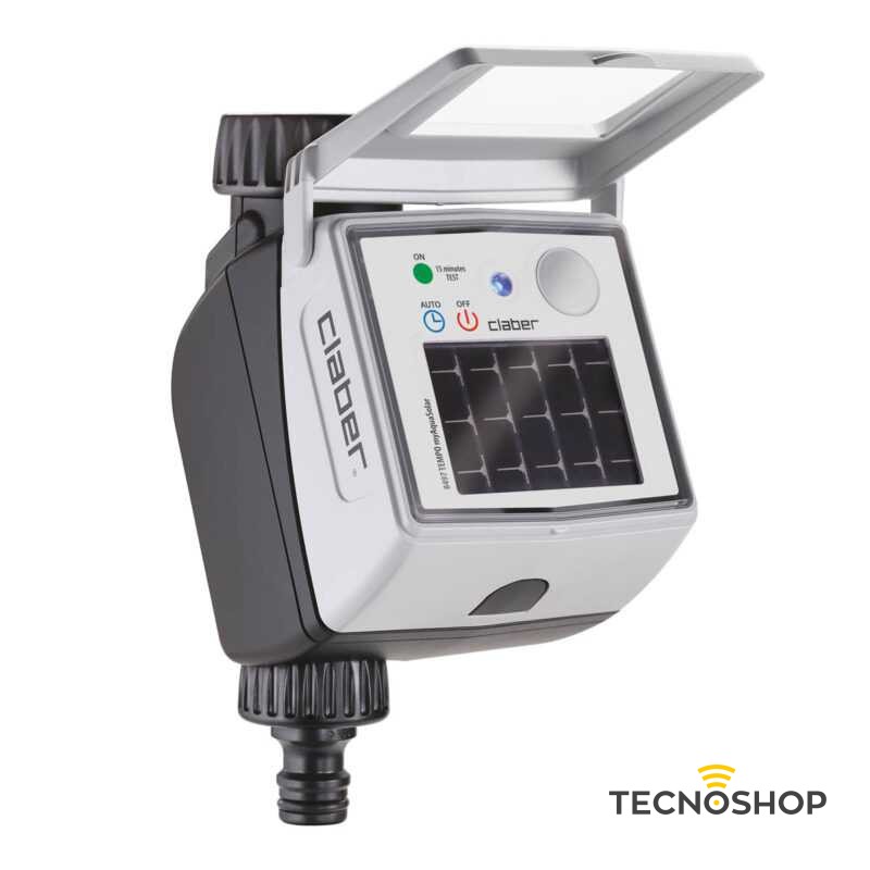 Programmatore automatico a una via. Dotato di un pannello fotovoltaico integrato, funziona con energia solare anche senza essere esposto direttamente ai raggi del sole. Non necessita dell’utilizzo di batterie. Facile programmazione attraverso tecnologia Bluetoothยฎ e app Claber myAquaSolar. 2 programmi totalmente personalizzabili. Tasto per messa in off del programmatore e avvio della funzione manuale (attivabile anche da App). Programmazione settimanale con esclusione dei singoli giorni. Parti elettroniche isolate e assenza di cavi a vista. Attacco rubinetto 3/4โ (20-27 mm) con ghiera pivotante. Filtro lavabile. Pressione di esercizio da 0,5 a 10 bar. Collegabile al Rain Sensor base (90915). Controllato e testato al 100%.