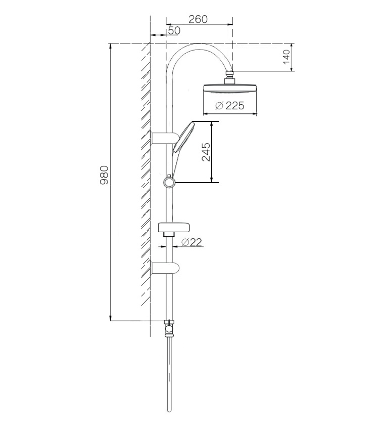 - Asta in acciaio cromata 22 mm ad arco rotondo