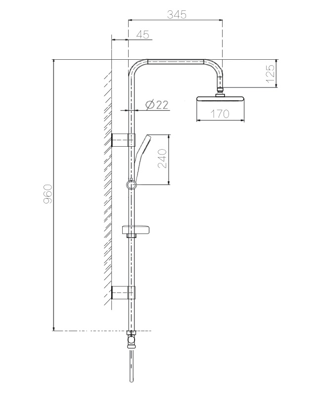 Colonna doccia cromata con asta in acciaio da 22 mm a arco squadrato, dotata di soffione e doccetta modello Tile monogetto in ABS. Include due flessibili in acciaio cromato, portasapone in ABS e deviatore in ottone cromato, per un set completo e funzionale.