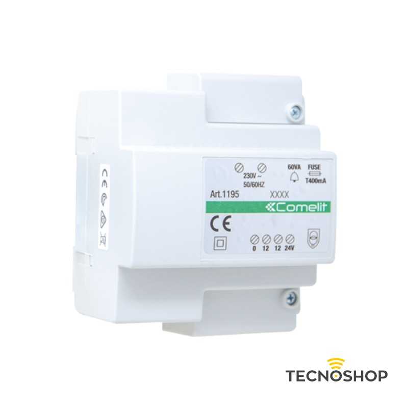 Trasformatore 1195 applicabile a guida DIN (5 moduli), ingresso 230 VAC / 50รท60 Hz, uscita 12/24 VAC con morsettiera.