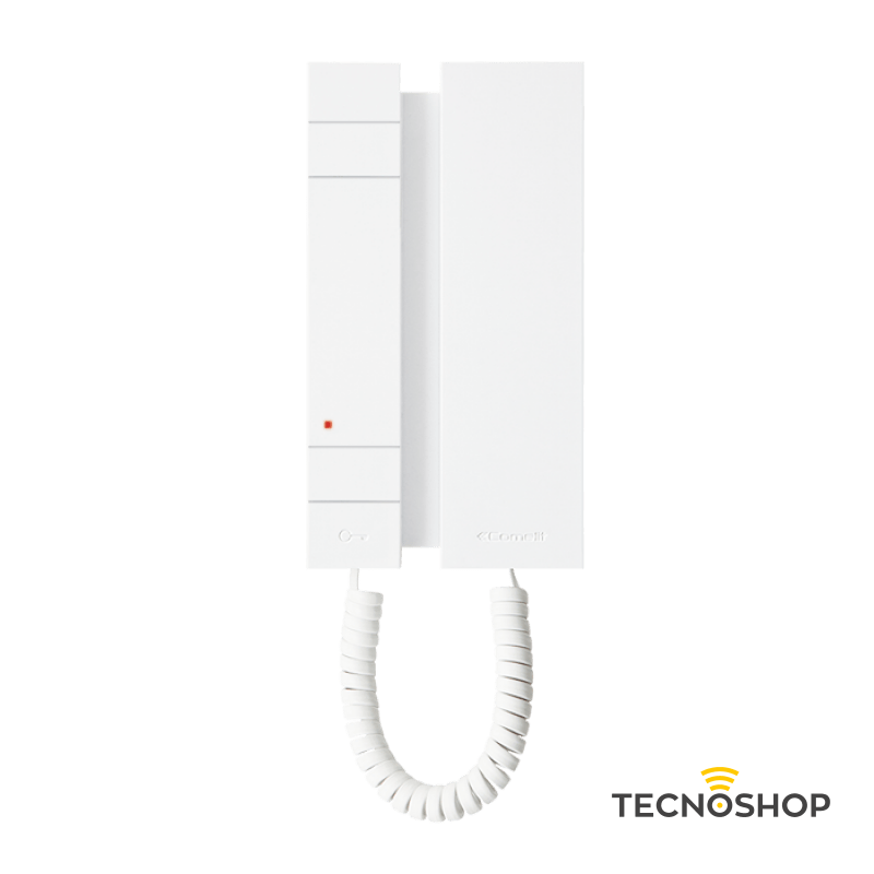 Citofono serie Mini con cornetta per sistemi audio Simplebus 2. E’ dotato di pulsante apriporta, pulsante per servizi aggiuntivi come ad esempio, chiamate verso il centralino di portineria…, regolazione del volume di chiamata, modalità Silenzioso (Privacy) e di ingresso per la chiamata al piano.