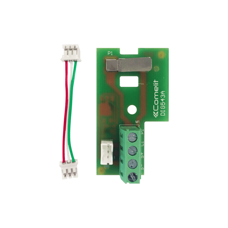 Scheda addizionale per citofoni art. 2708W/A e 2738W/A per disporre di ripetizione di chiamata e di pulsante supplementare con contatti liberi. Cavo di collegamento alla scheda principale e vite di fissaggio forniti a corredo.