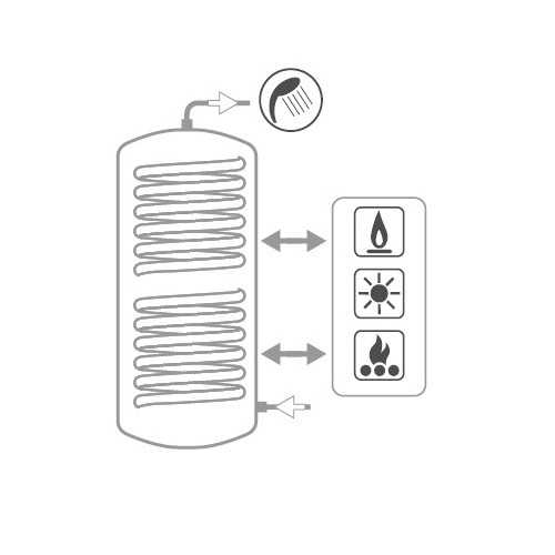 Produzione ed accumulo di acqua calda sanitaria (ACS). Tutti i collegamenti idraulici sul retro, le connessioni frontali e la flangia sono allineati per un’installazione semplice e veloce.