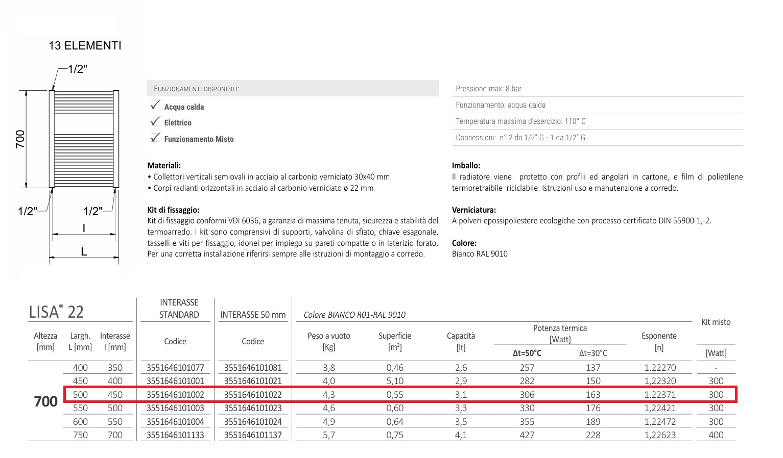 - Larghezza: 500 mm