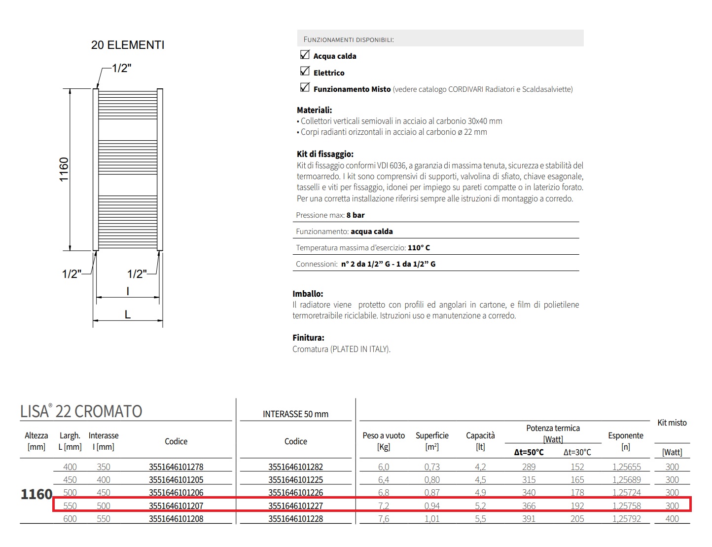 - Larghezza: 550 mm