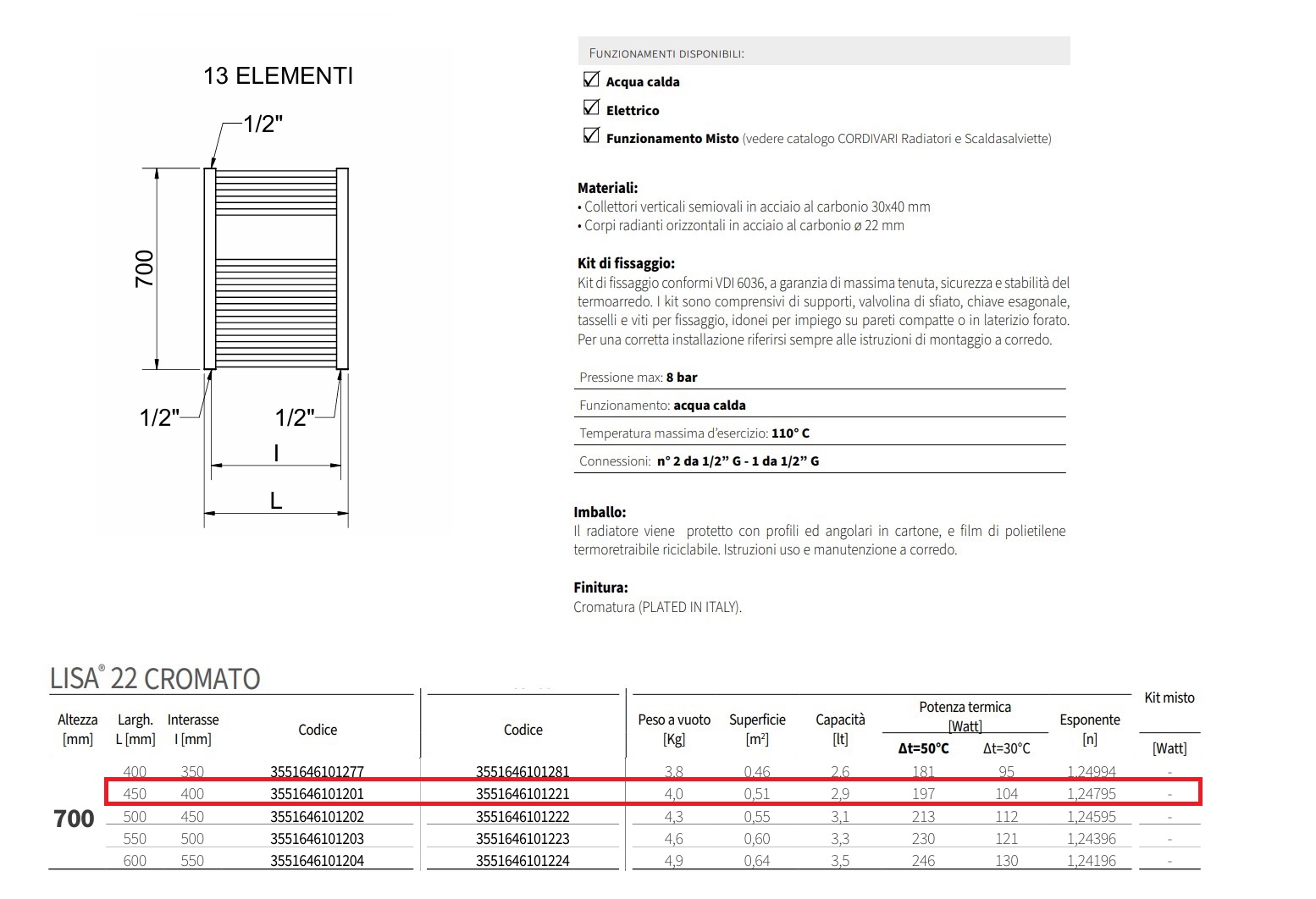 - Larghezza: 450 mm