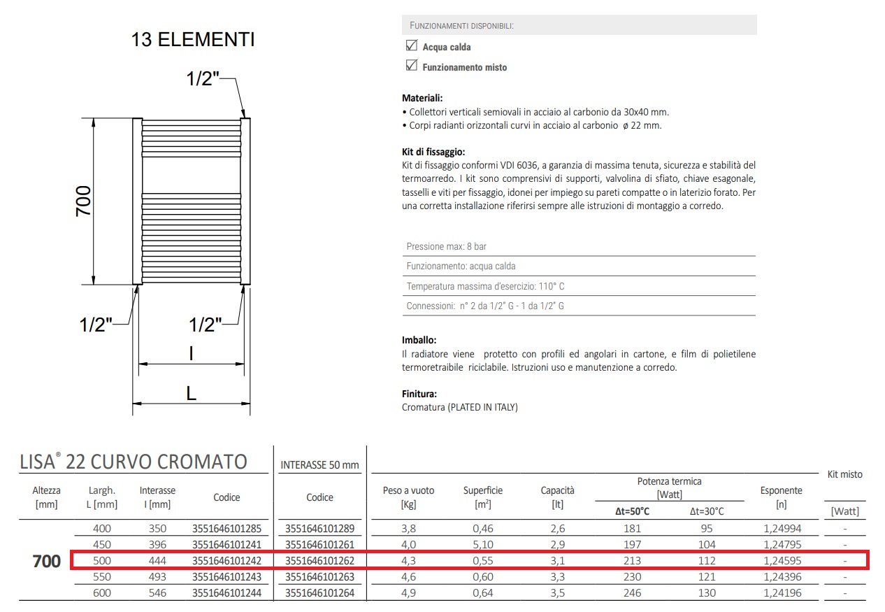 Radiatore termoarredo scaldasalviette curvo Lisa 22 CROMATO si caratterizza per il suo design pulito, la qualità delle sue rifiniture e l’affidabilità senza eguali, e si armonizza perfettamente con gli ambienti bagno più esclusivi.