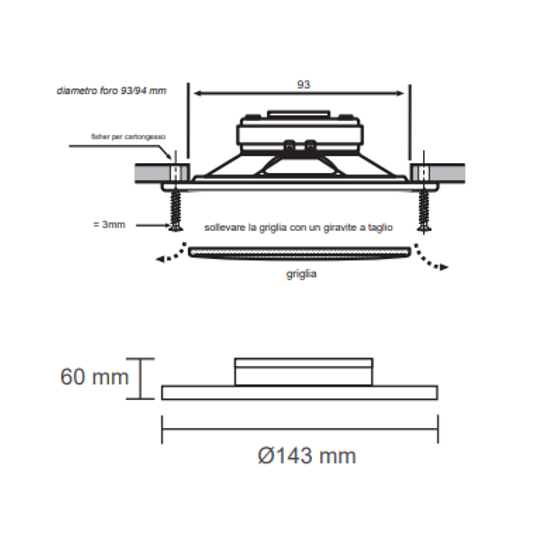 - Diametro esterno: 143(D) x 60(P)mm – foro 93mm