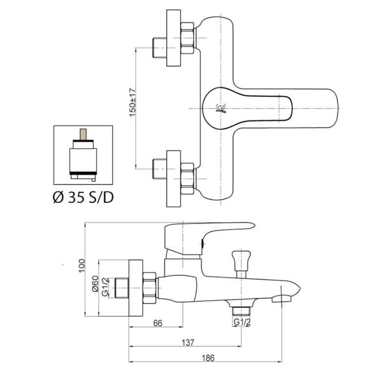 - Diametro cartuccia: ร 35 mm senza distributore