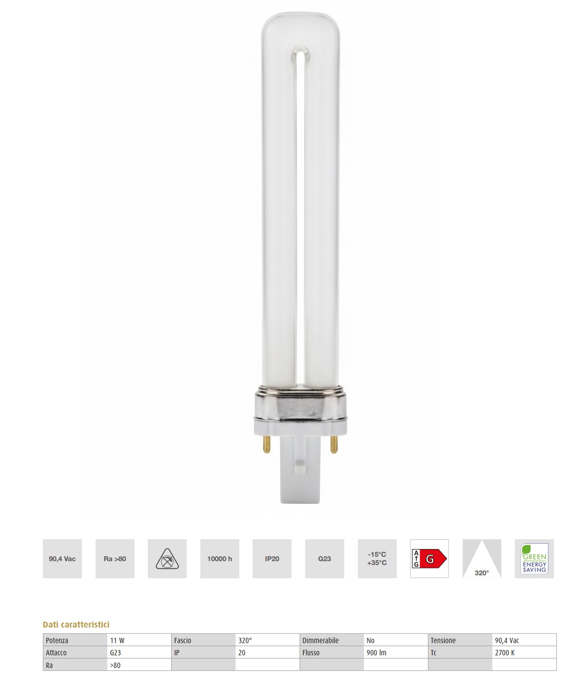 Lampada con luce calda e accogliente a 2700 K, flusso luminoso di 900 lm e ampia apertura fascio di 320°. Garantisce una buona resa cromatica (>80), prestazioni luminose stabili nel tempo e consumi contenuti. Ideale per creare atmosfere intime in ambienti domestici, con funzionamento affidabile e non dimmerabile.