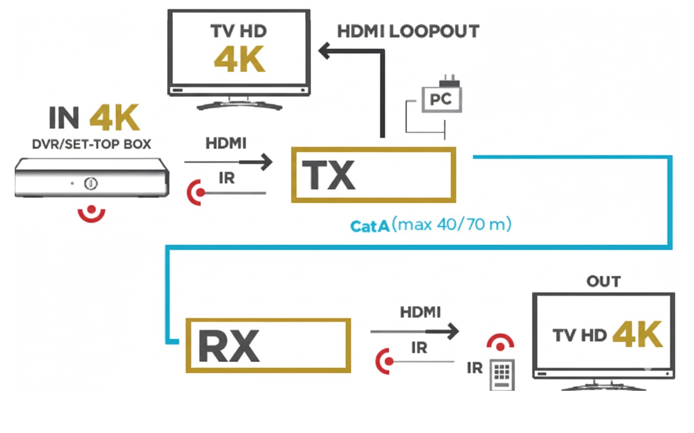 Grazie al ripetitore di telecomando IR è possibile controllare la sorgente a distanza e la porta HDMI passante (Loop-Out) presente sul trasmettitore permette di collegare contemporaneamente una TV vicino ad esso. Supporta i segnali HDCP 1.4, compressione Audio Dolby DTS. Sia il trasmettitore che il ricevitore sono facili da installare ed occupano poco spazio. Sono ideali per uso domestico e professionale, in uffici, entertainment, sale conferenze, scuole e ambienti di formazione.