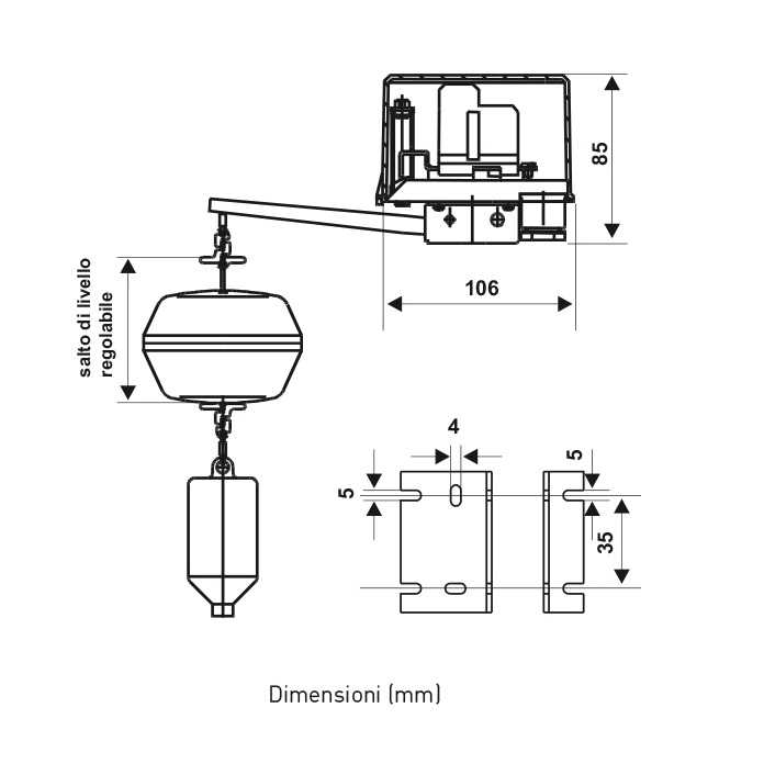 - Funzione di svuotamento o riempimento, semplicemente spostando un perno e il galleggiante con contrappeso