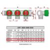 Collettore componibile cromato a 4 derivazioni per impianti sanitari o riscaldamento con arresti manuali.