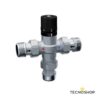 Miscelatore termostatico, per impianti sanitari, in ottone cromato, con attacchi maschio da 1/2″-3/4”-1″completi di bocchettoni e guarnizioni, valvole di ritegno su attacchi laterali, manopola di regolazione, in ABS, provvista selettore numerato da 1 a 5 corrispondente ad un campo di regolazione 30÷65°C e dispositivo di bloccaggio della temperatura, funzione antiscottatura, elemento termosensibile a cera. Temperatura max in ingresso 95°C. Pressione max di funzionamento 10 bar.