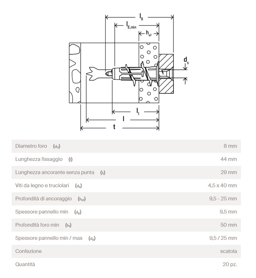 - Il tassello è pronto all’uso: la punta metallica è preinstallata e può essere applicato direttamente.