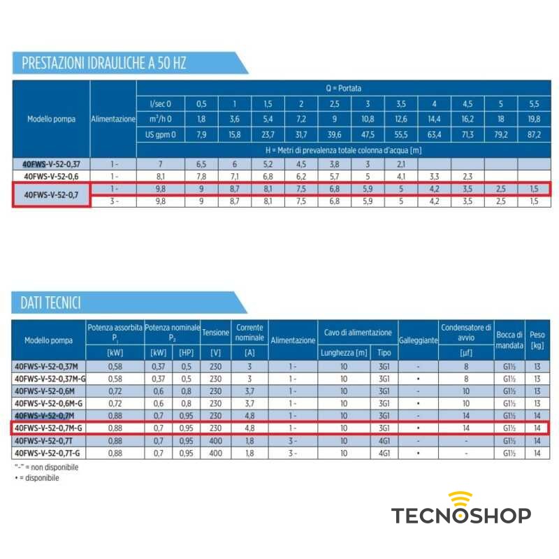 | Voltaggio | Monofase 230V ±6% protezione termica incorporata, interruttore galleggiante opzionale/trifase 230V ±10%, 400V ±10% |