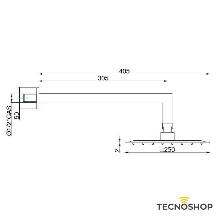 Braccio doccia in ottone con soffione slim in acciaio 250x250mm.