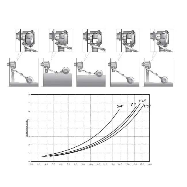 - In questa situazione si realizza un equilibrio idrodinamico capace di adattarsi a tutte le oscillazioni della pressione all’interno dell’impianto senza perdere nemmeno una goccia di acqua e svincolandosi dalla spinta sul galleggiante.
