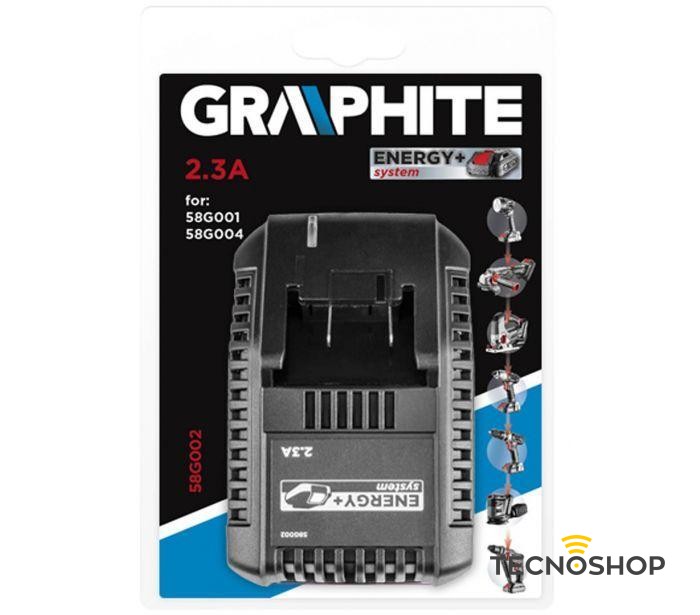 Il caricabatterie Graphite 58G002 della serie Energy + è progettato per la ricarica rapida delle batteire Energy+ dei modelli 58G001 e 58G004.