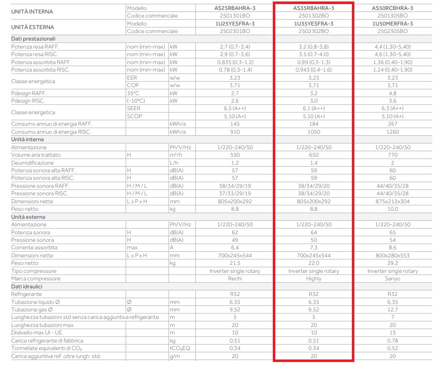 • Unita’ interna AS35RBAHRA-3 12000 Btu