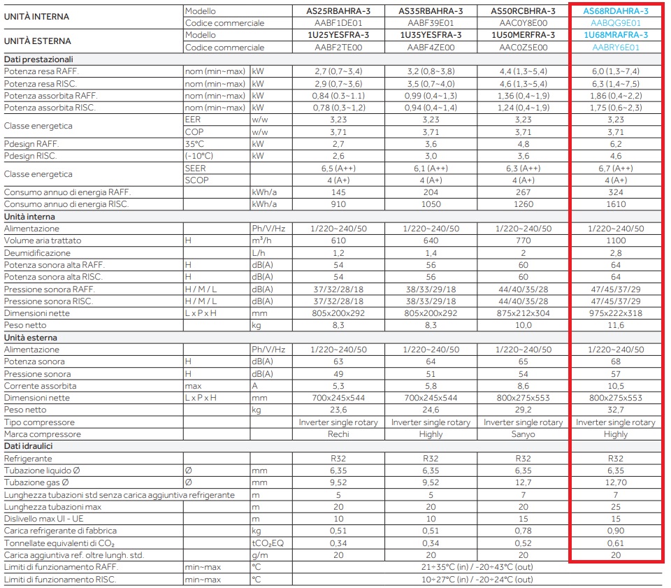- Unita’ interna AS68RDAHRA-3 24000 Btu